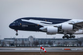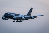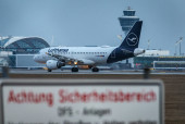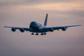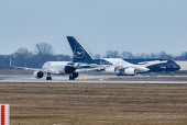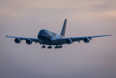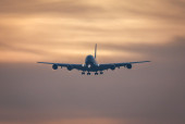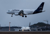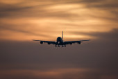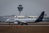 Flugbetrieb am Flughafen Muenchen waehrend Sonnenuntergang, Aviation, Luftfahrt, Munich Airport, Flugesellschaften, Airlines, Transportation, Tourism, Luftverkehr, Erdinger Moos, Munich, Muenchen, 08.03.2026